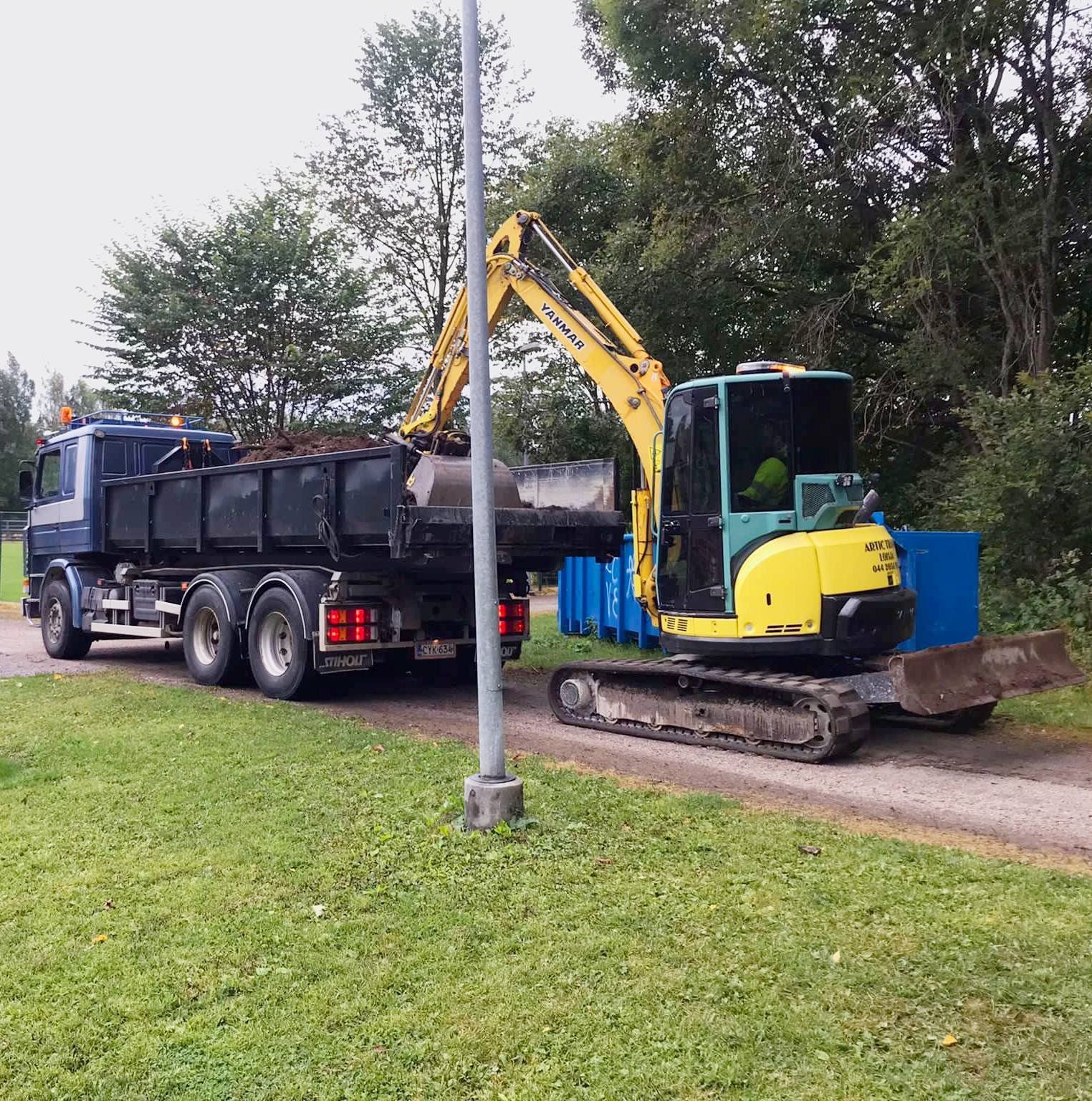 Meiltä saat tilattua sorat, sepelit, mullat, hiekat ja muut ainekset, mille tarve onkaan. Viemme myös kaivuumaat pois ja kuljetamme tilalle täytemaata.